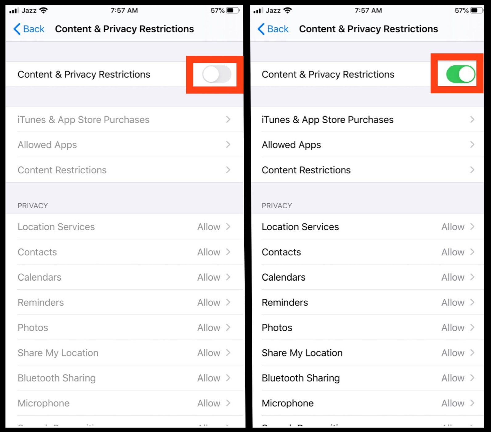 - ● Now you have to tap on "Content & Privacy Restrictions".