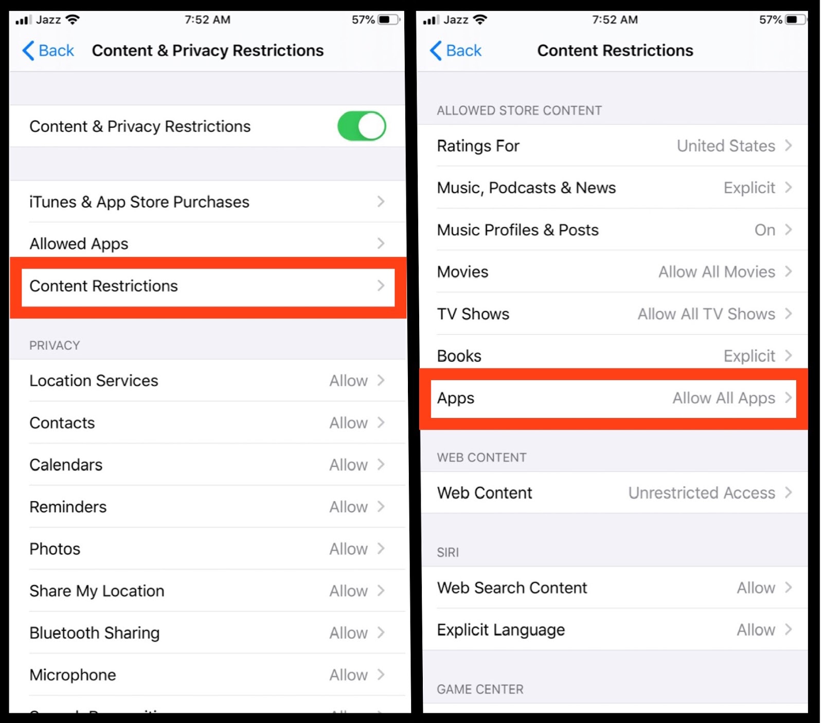 Third-party apps are those that are downloaded from the App Store. Almost we download every app from App Store like Twitter, Facebook, Instagram, etc. In order to hide the third party Apps on iPhone or iPad follow the below method.- ● Tap on Content Restrictions.