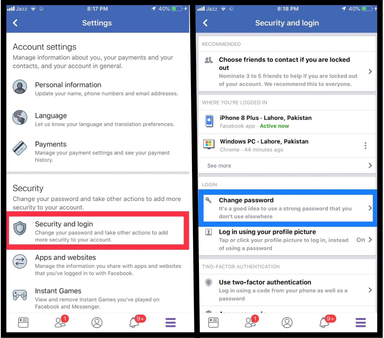Change Facebook Password |