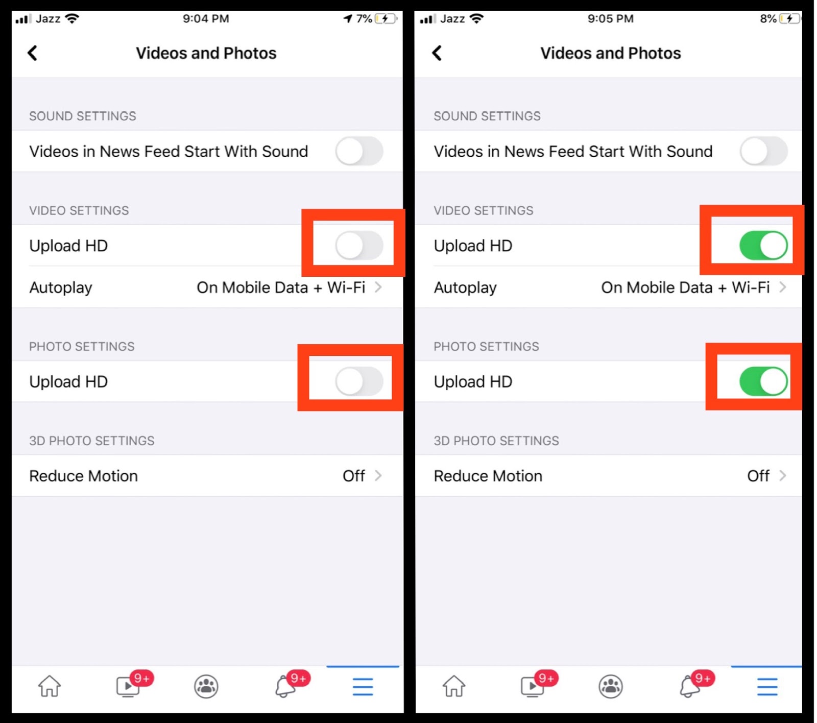 Most of the people due to this reason does not upload photos or videos on Facebook. To make your data plan save and to upload faster facebook disable the option to Upload HD Photos & Videos on Facebook.