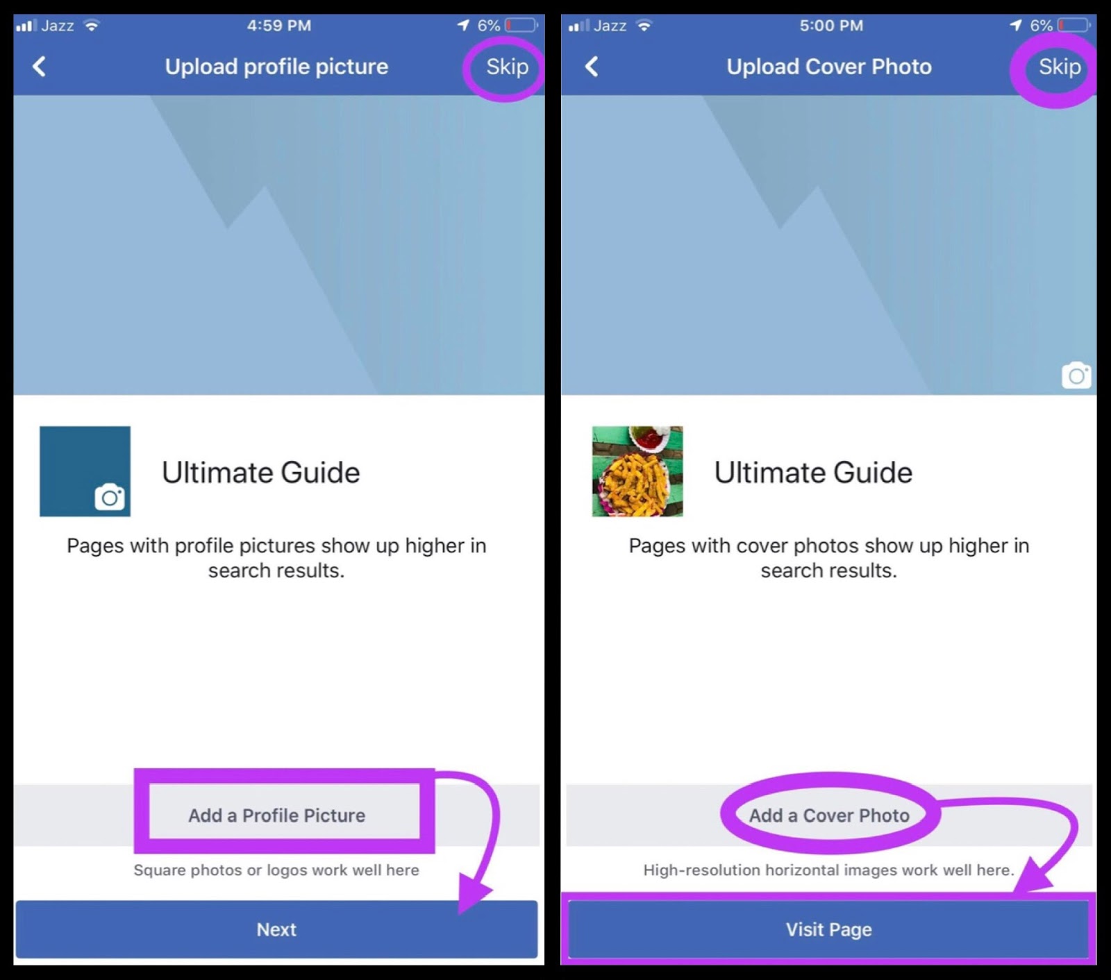 - ● Add a Profile Picture to give your page an awesome look or skip it.