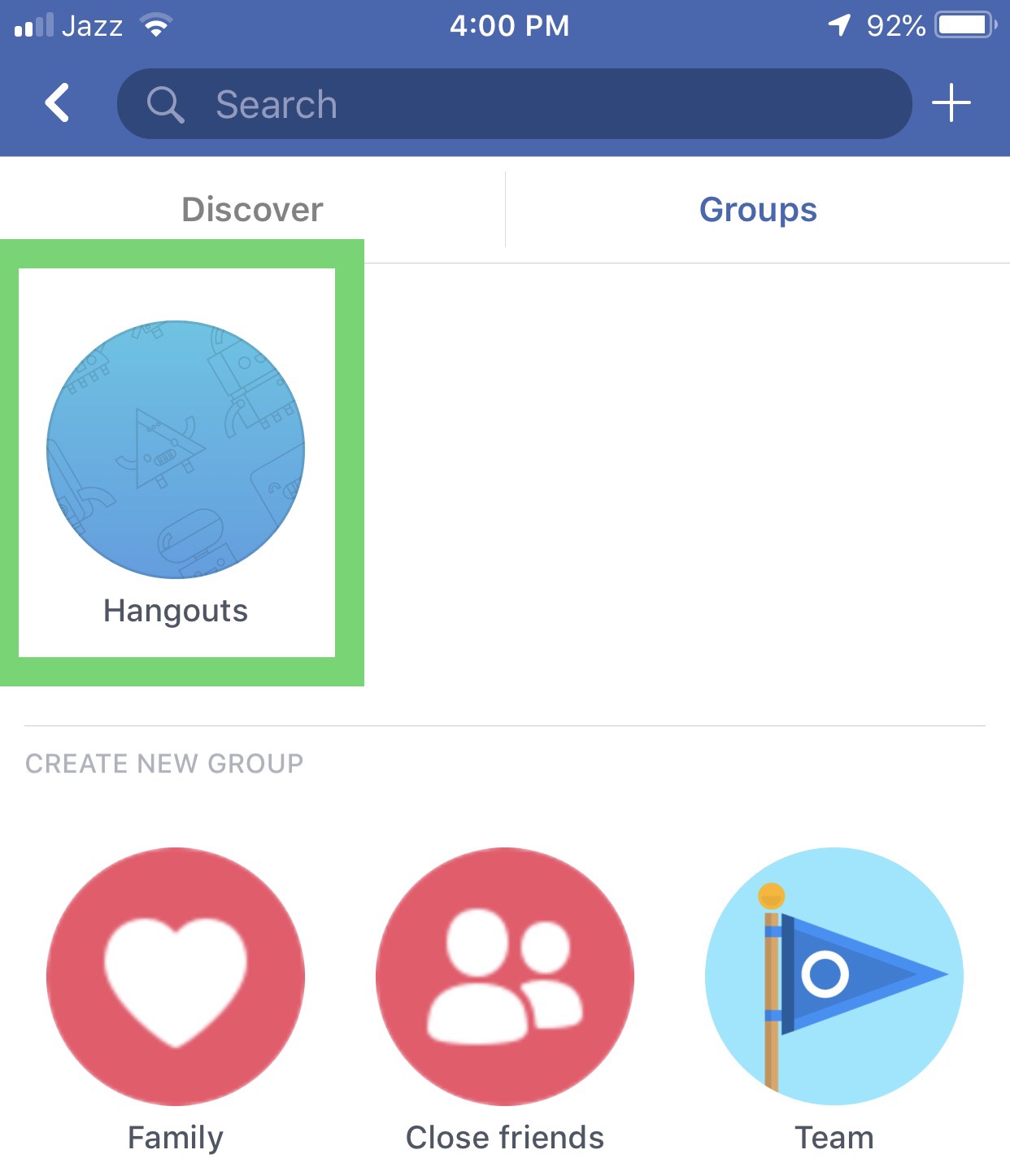 - ● In Discover, you will see some groups that you can join and once you create your own group then it will be shown here.