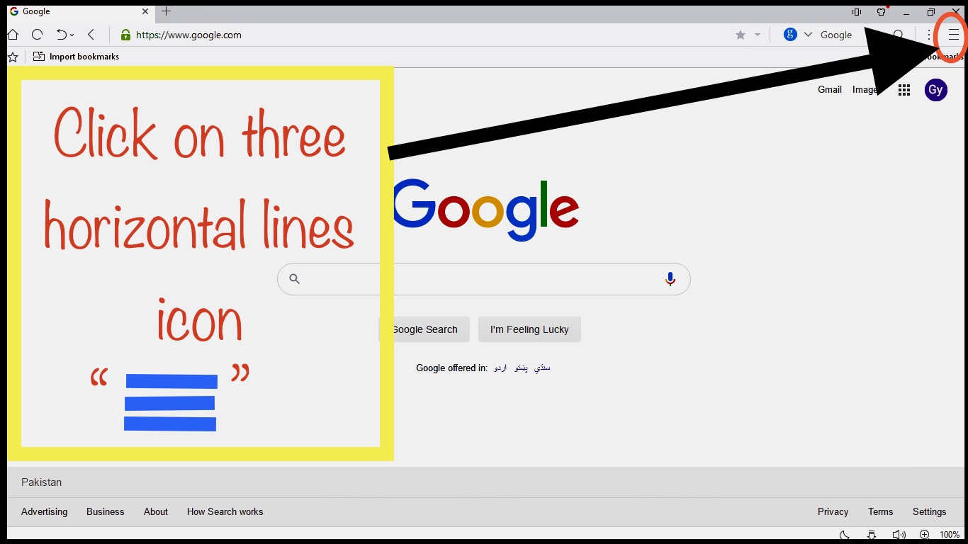- ● Click on the three horizontal lines button " ☰ "at the top right corner of the browser.