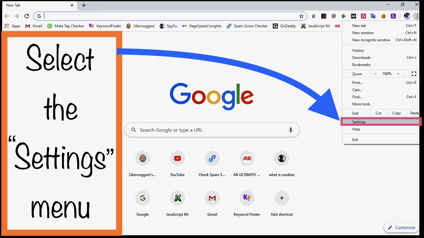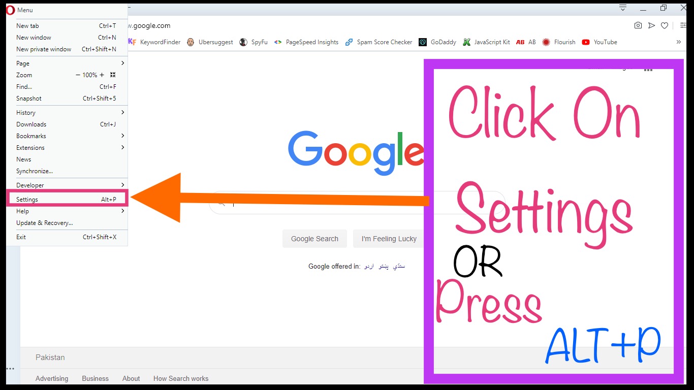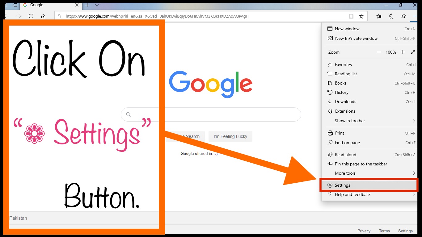 - ● This will open a browser menu with a lot of options in it. You have to select the Settings menu option.