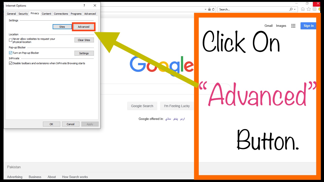 - ● In the privacy tab, selects the Advanced button you can see another small pop-up with Advanced privacy settings will open.