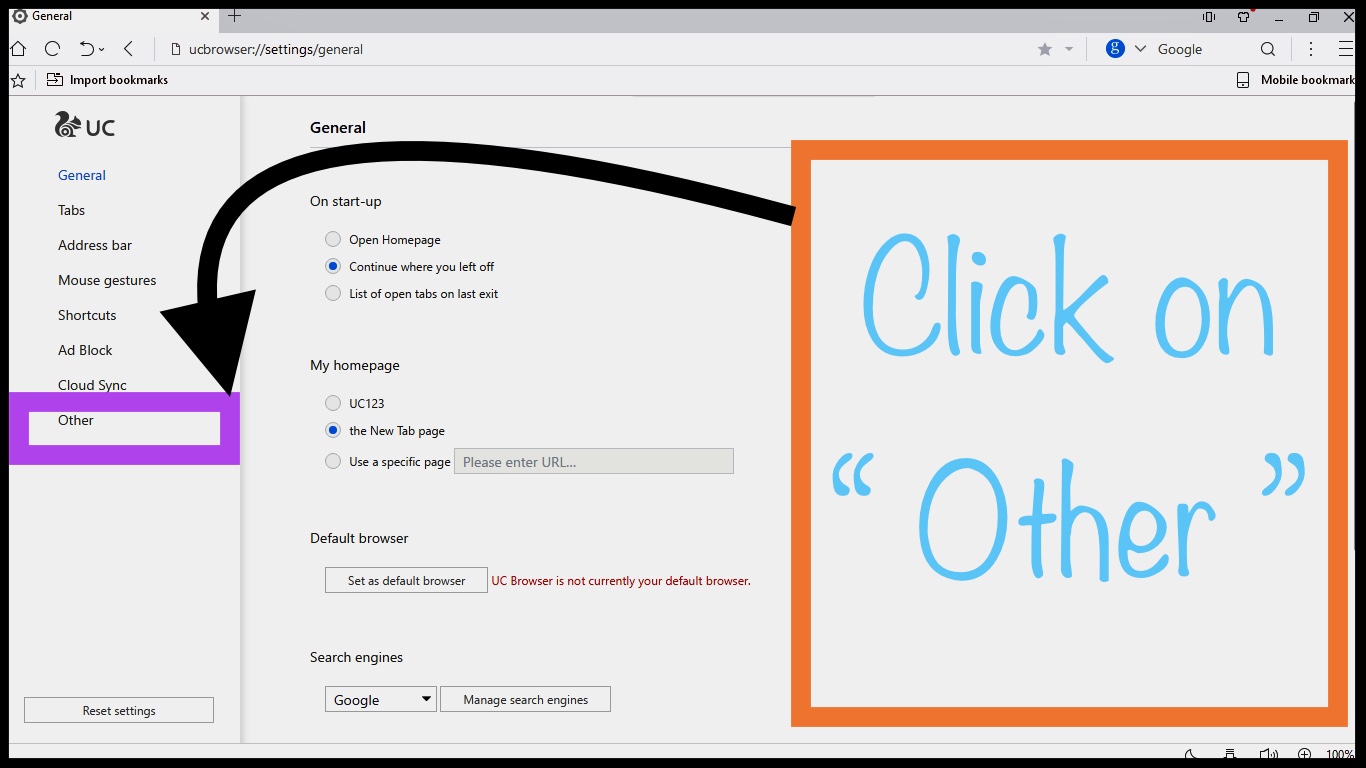 - ● The settings menu page will open on the screen. On the left side of the sub-menu box, you have to click on Other.