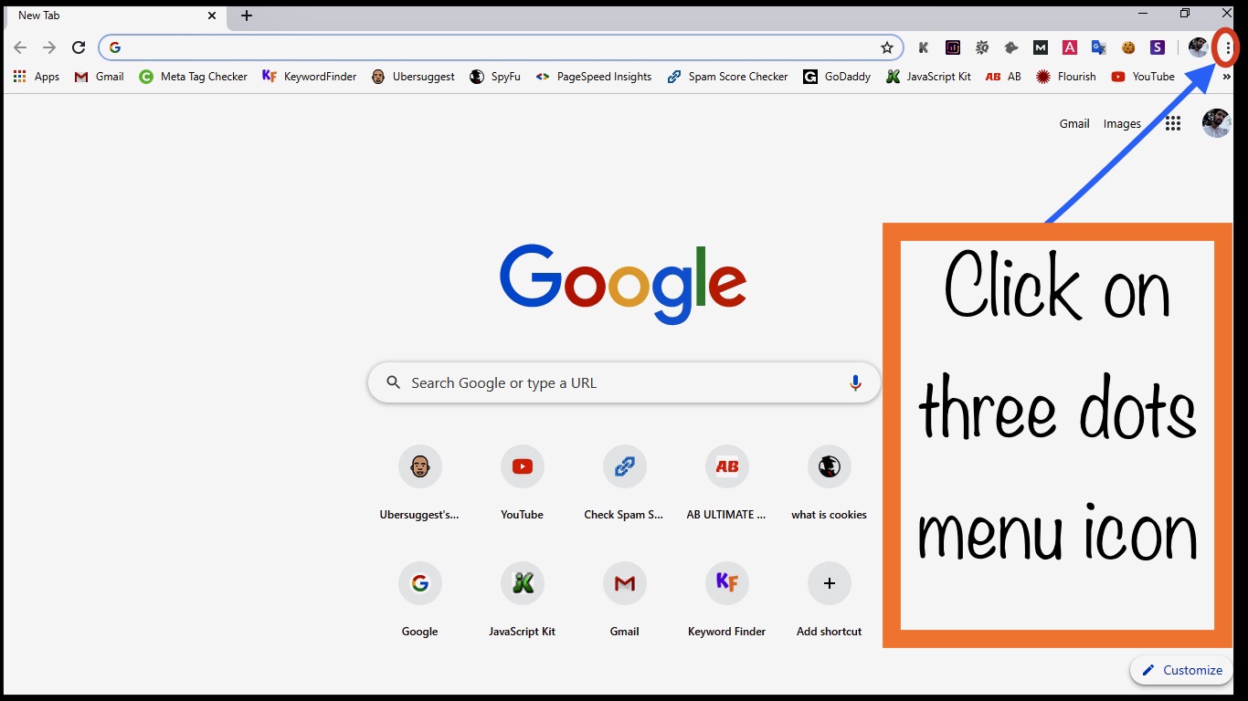 - ● Open a Google Chrome browser first. In the most top right corner of the chrome browser, you will see a three dots menu icon in the vertical column ፧ just click on it.