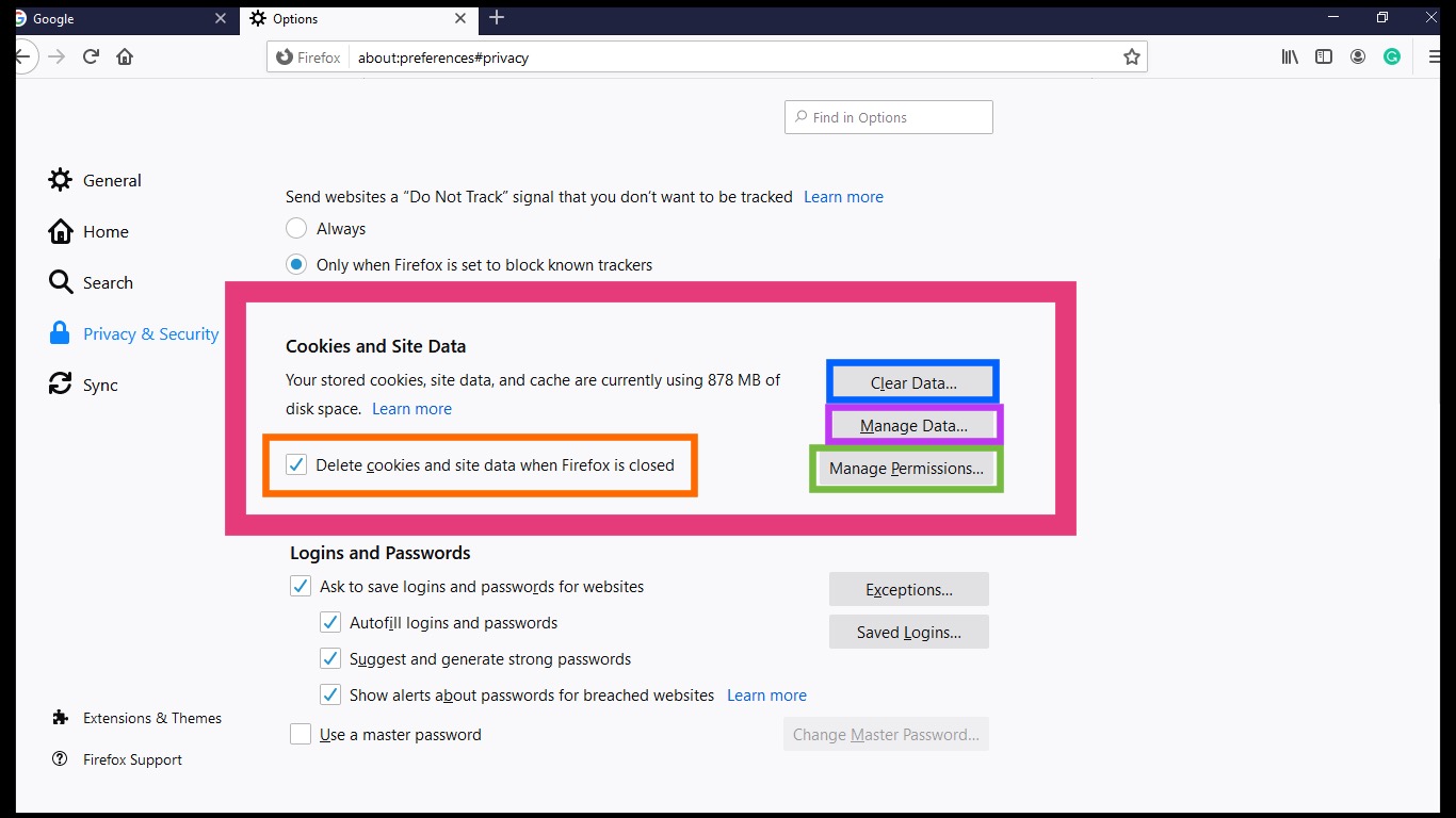- ● Here in this option, you can clear on exit, allow, or block a particular website from tracking you. Once you blocked the website will not store cookies on your computer.
