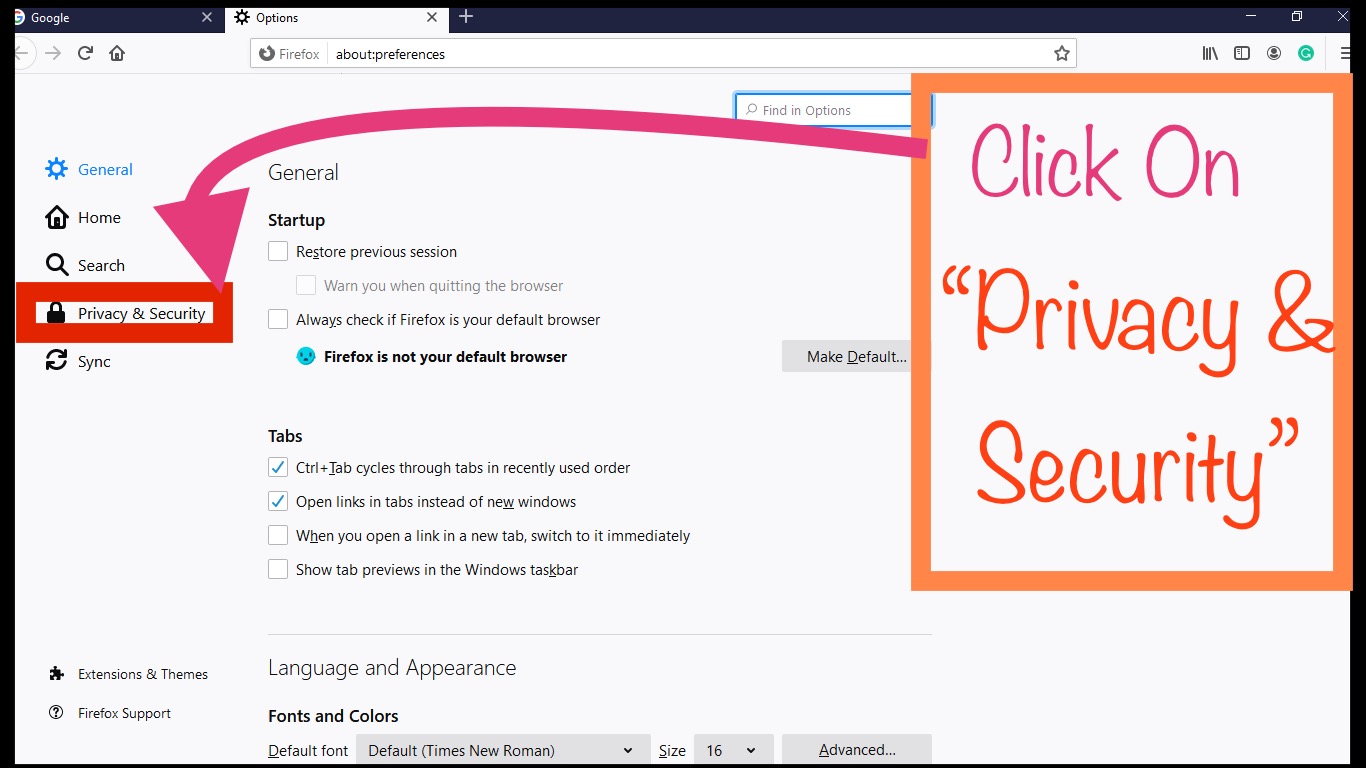- ● A pop-up window dialog will open with a lot of Browser settings and Tabs in it.