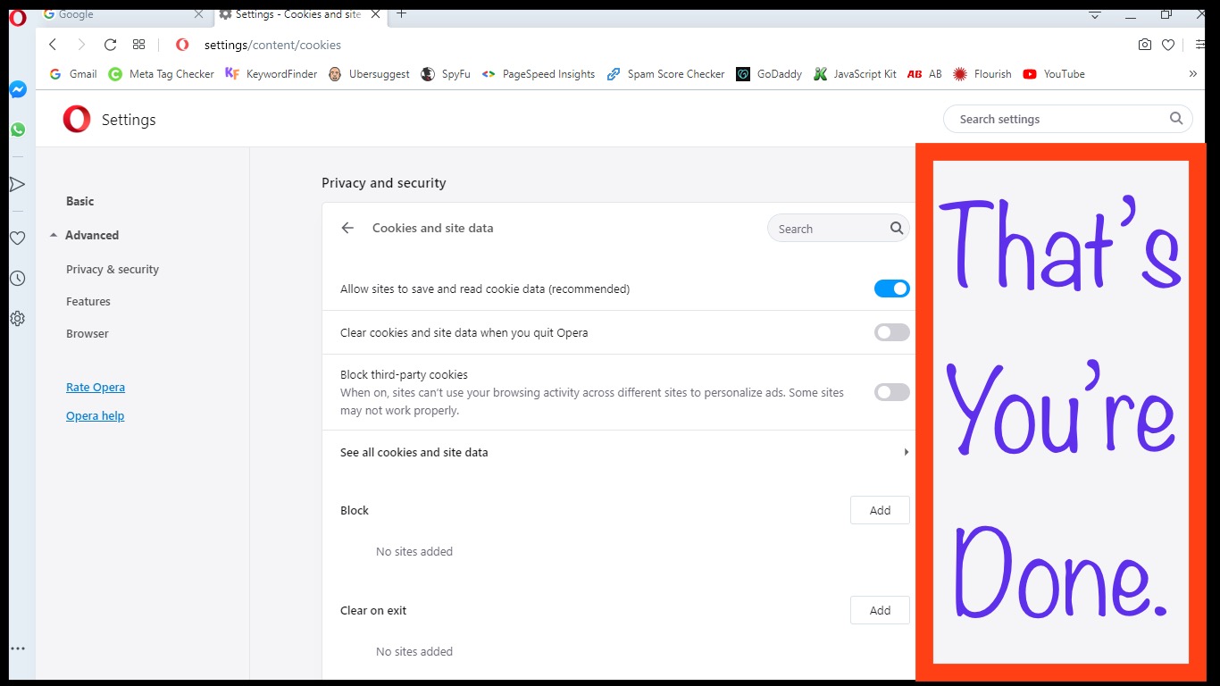 - ● You have successfully enabled the cookies in Opera. By doing this, you will allow the visited site to save and read cookies data of your activities.