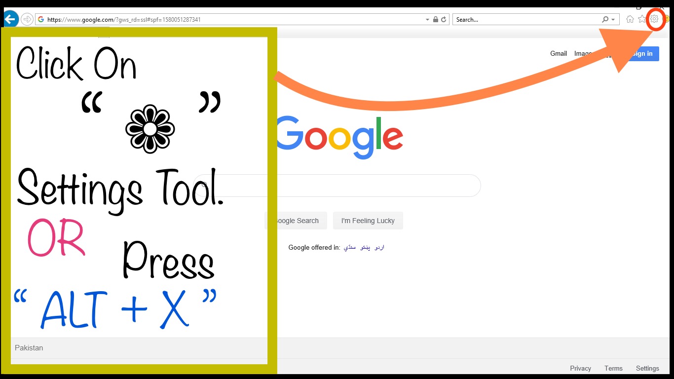 - ● Click on the Setting Tool ❁ in the top right corner of the browser or simply you can press the Alt + X to open the Tool menu.