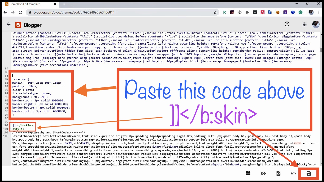 - ● Press on Save Theme. You are done code box has been added to your blogger.