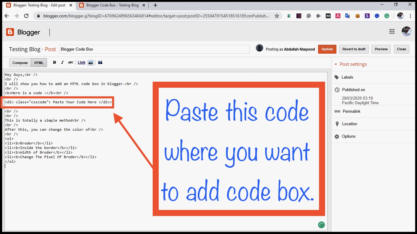 Now the thing that comes into your mind is that how to add code in blogger posts.