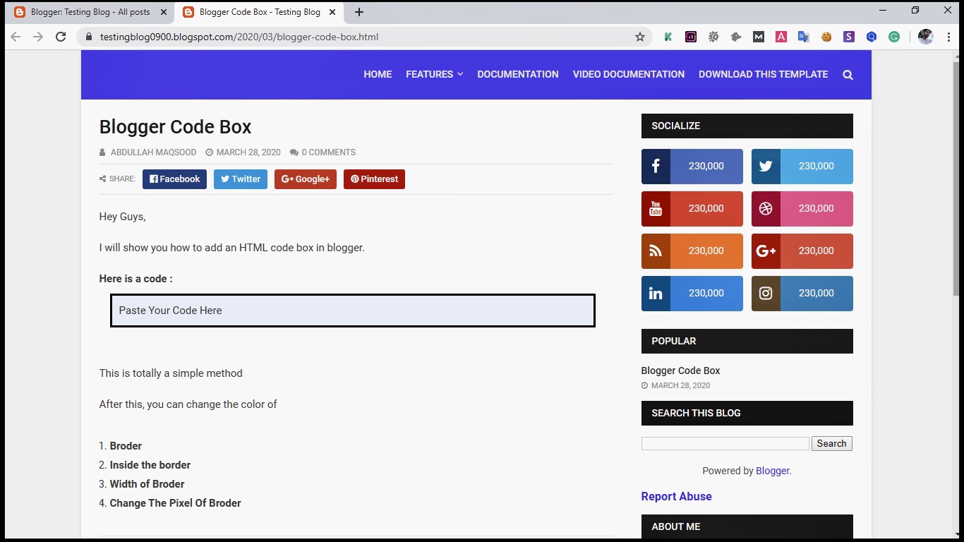 It gives you all access to edit your website template according to your choice but for that, you just need some basic knowledge of codings like HTML, CSS, and PHP, etc for professional use. That is why you need some type of coding in order to add code box in blogger post.