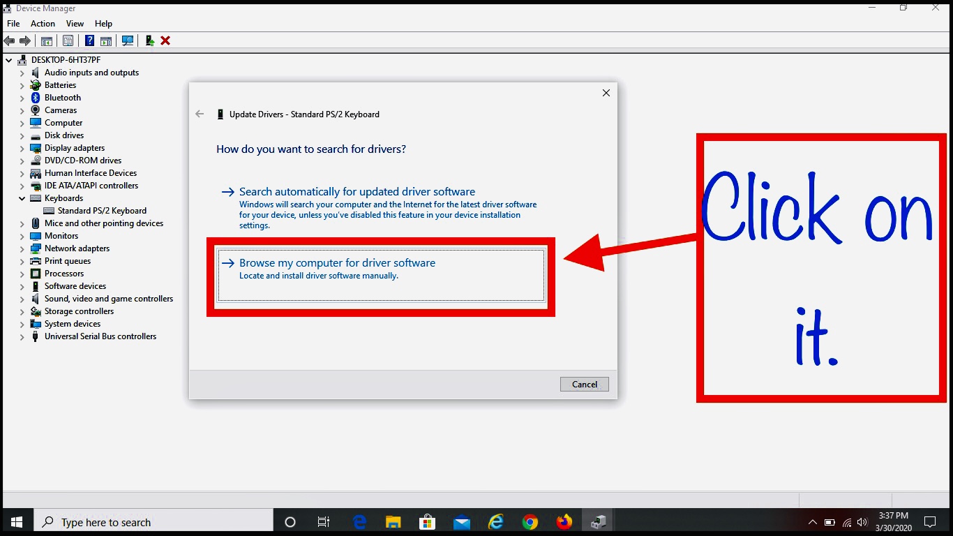 - ● Just press the right click of a mouse on the Standard PS/2 Keyboard and click on Update driver.