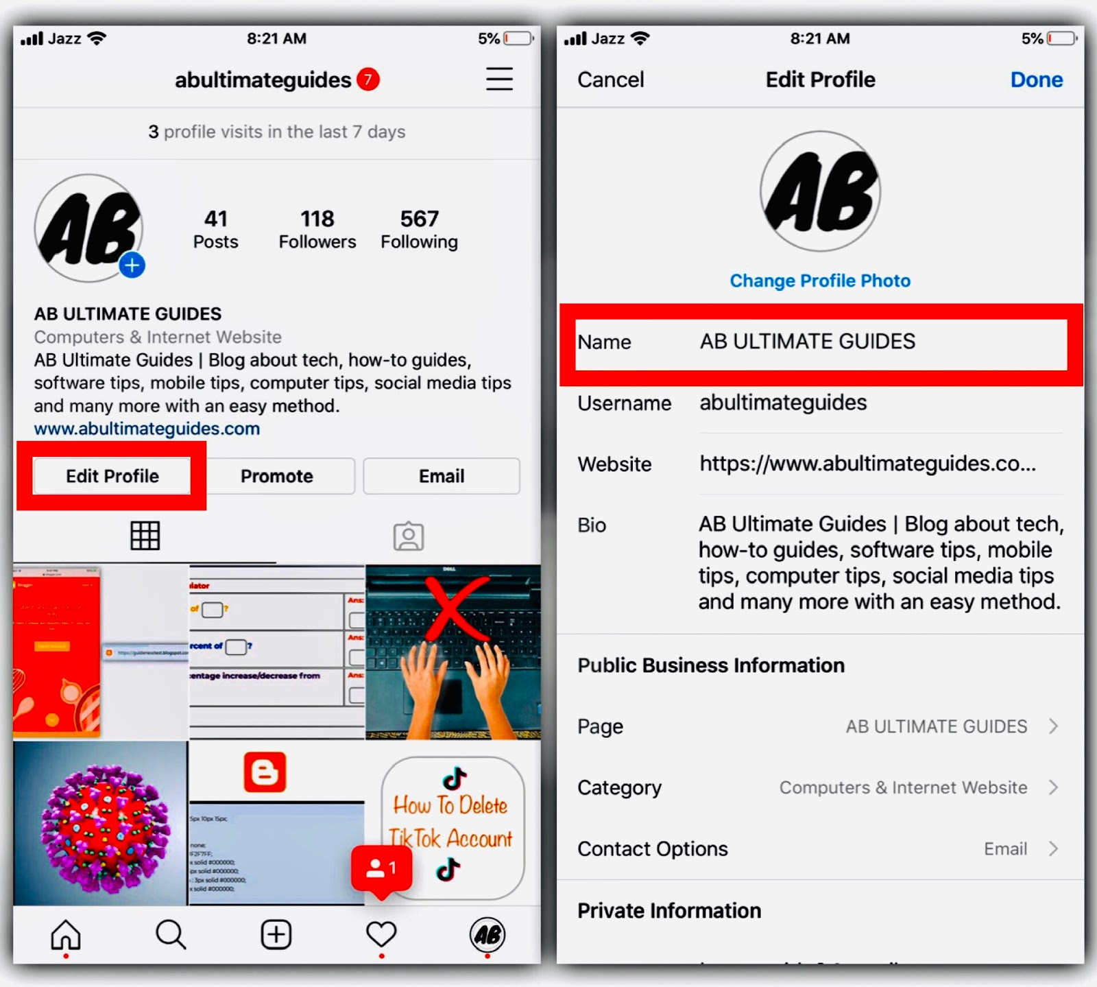 • Here you can see my current name is 'AB ULTIMATE GUIDES'.