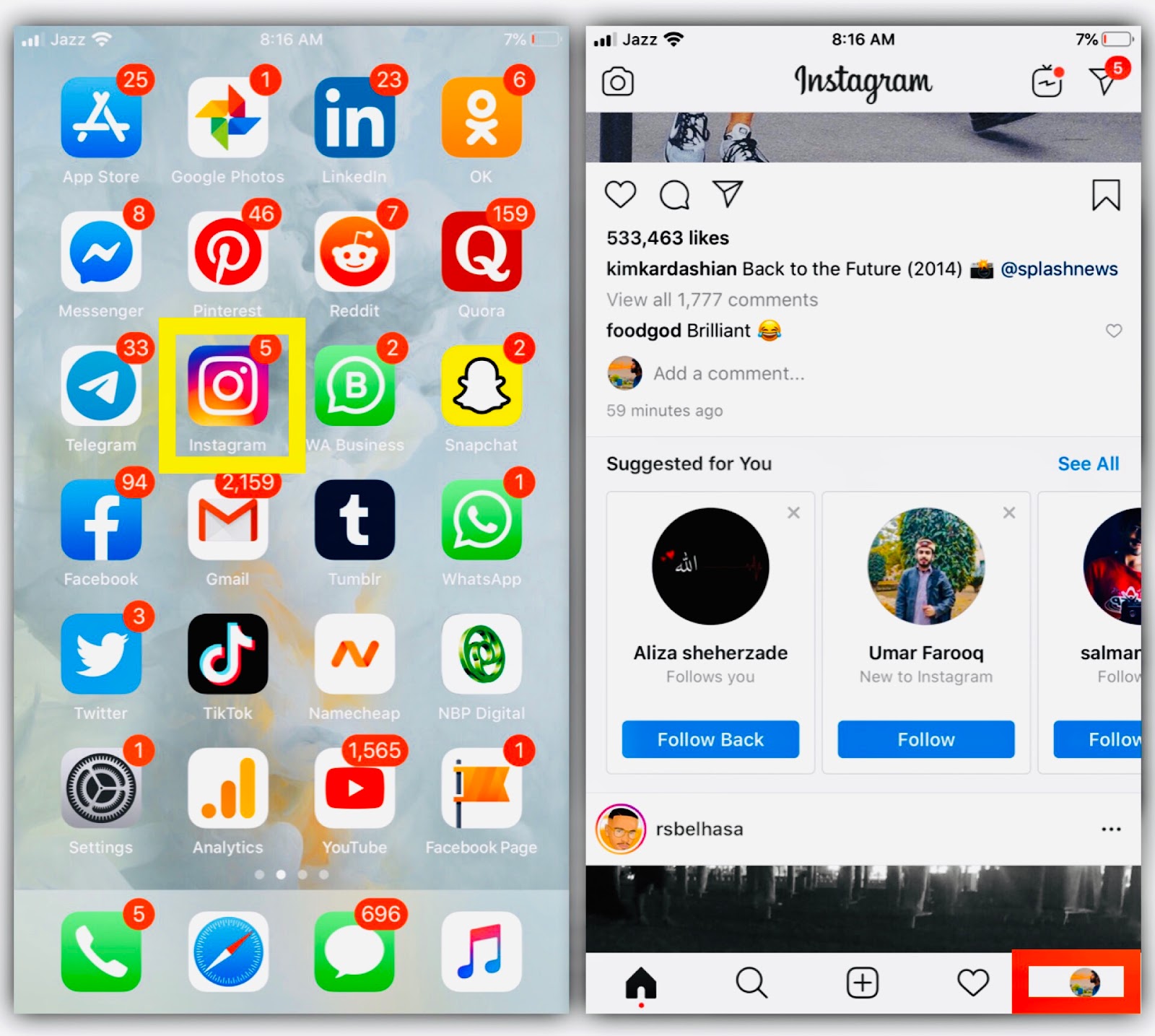 • ● Log in to Instagram account in order to make a blank name for instagarm.