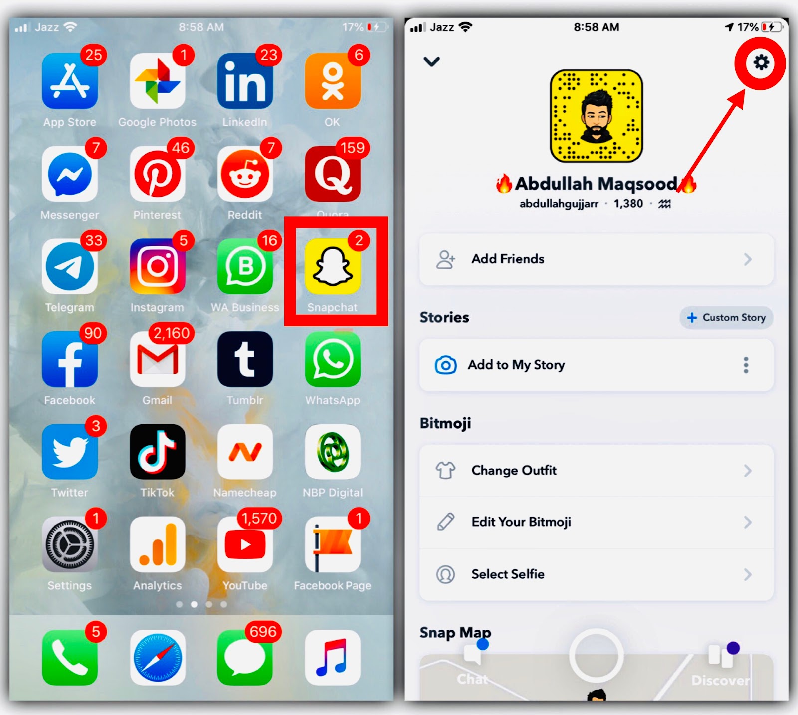- ● Log in to Snapchat account in order to make a blank name for snapchat.