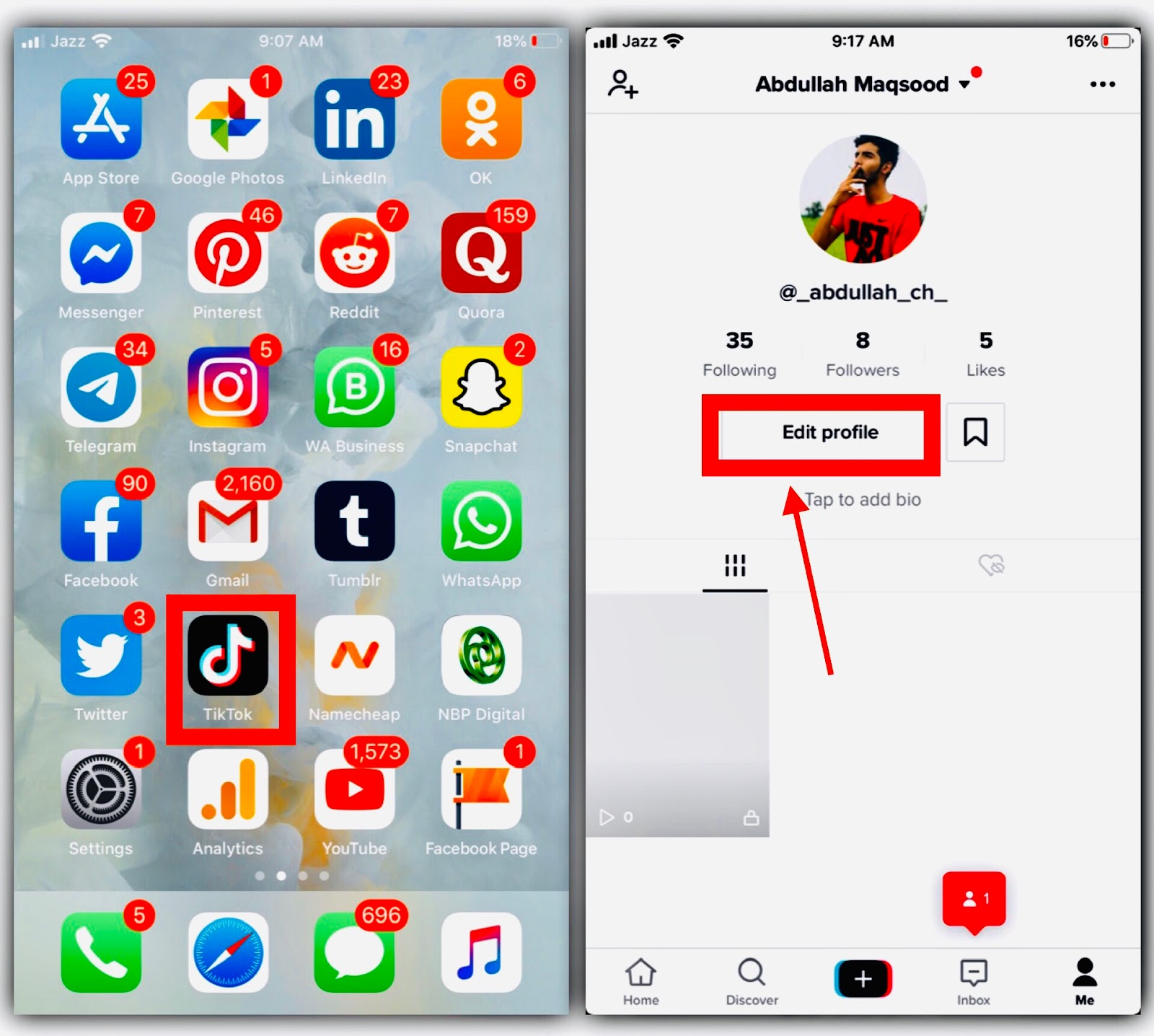 - ● Log in to the TikTok account in order to make invisible name on tiktok.