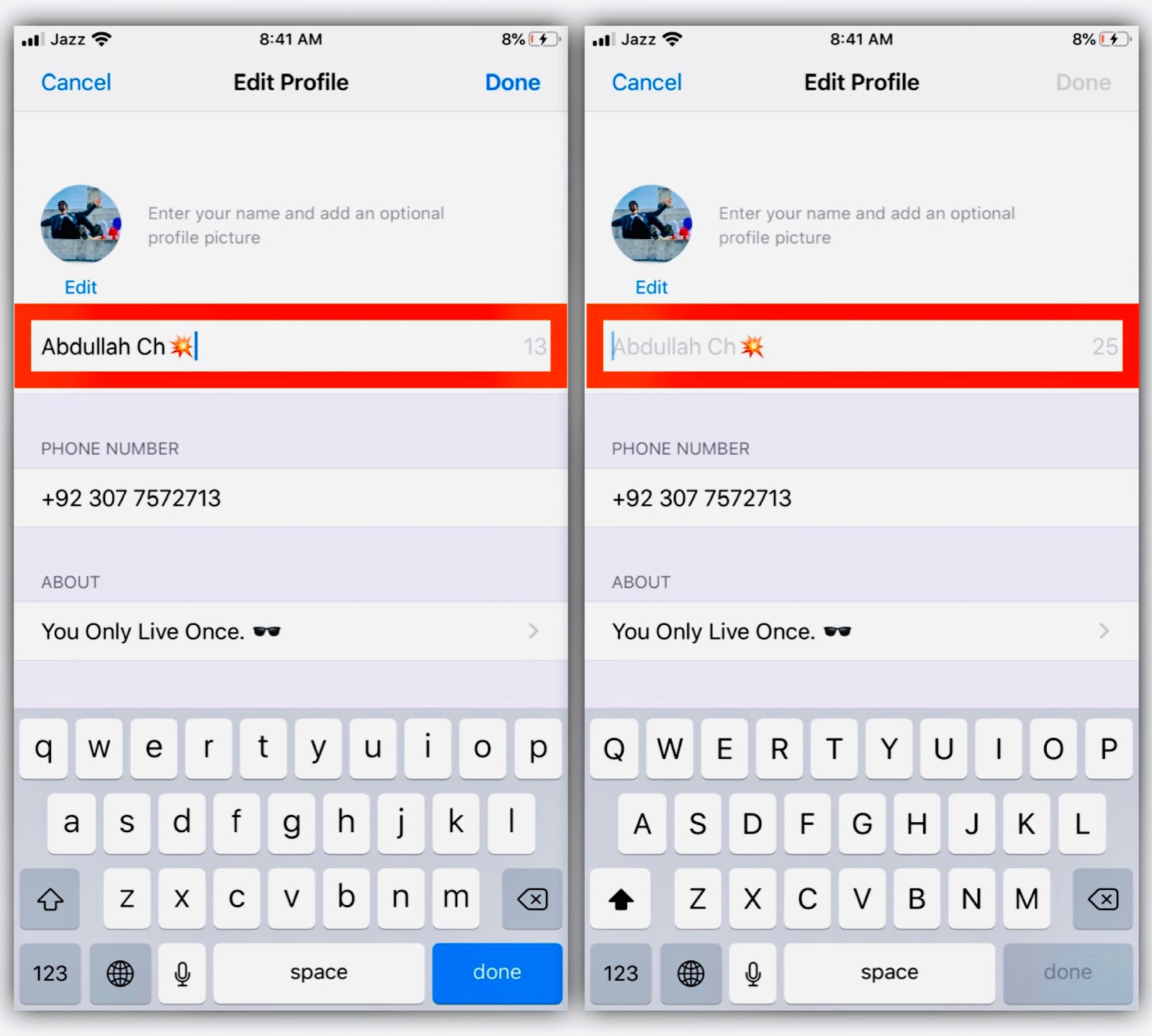 You can surprise your contacts by hiding your name or it can also be for fun purposes. Whatsapp doesn't like these crazy types of things as Whatsapp updates come regularly so they try to make it impossible for the users. But most peoples like to do these kinds of thing so that it looks unique from the others.