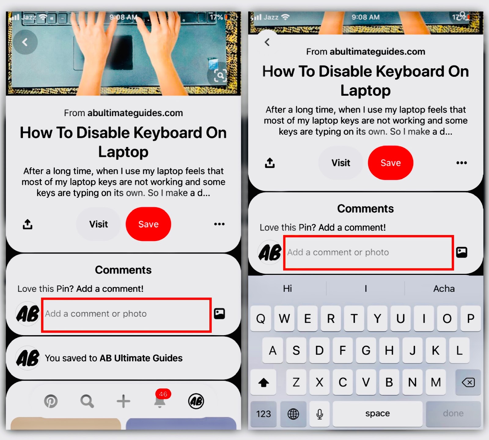 According to Pinterest, you can only type some text, stickers, and emojis in your comment section. Without type something, you can't post a blank comment. We like to comment blank but what happens when we comment blank. In this way, you can surprise your friends by commenting blank on Pinterest.