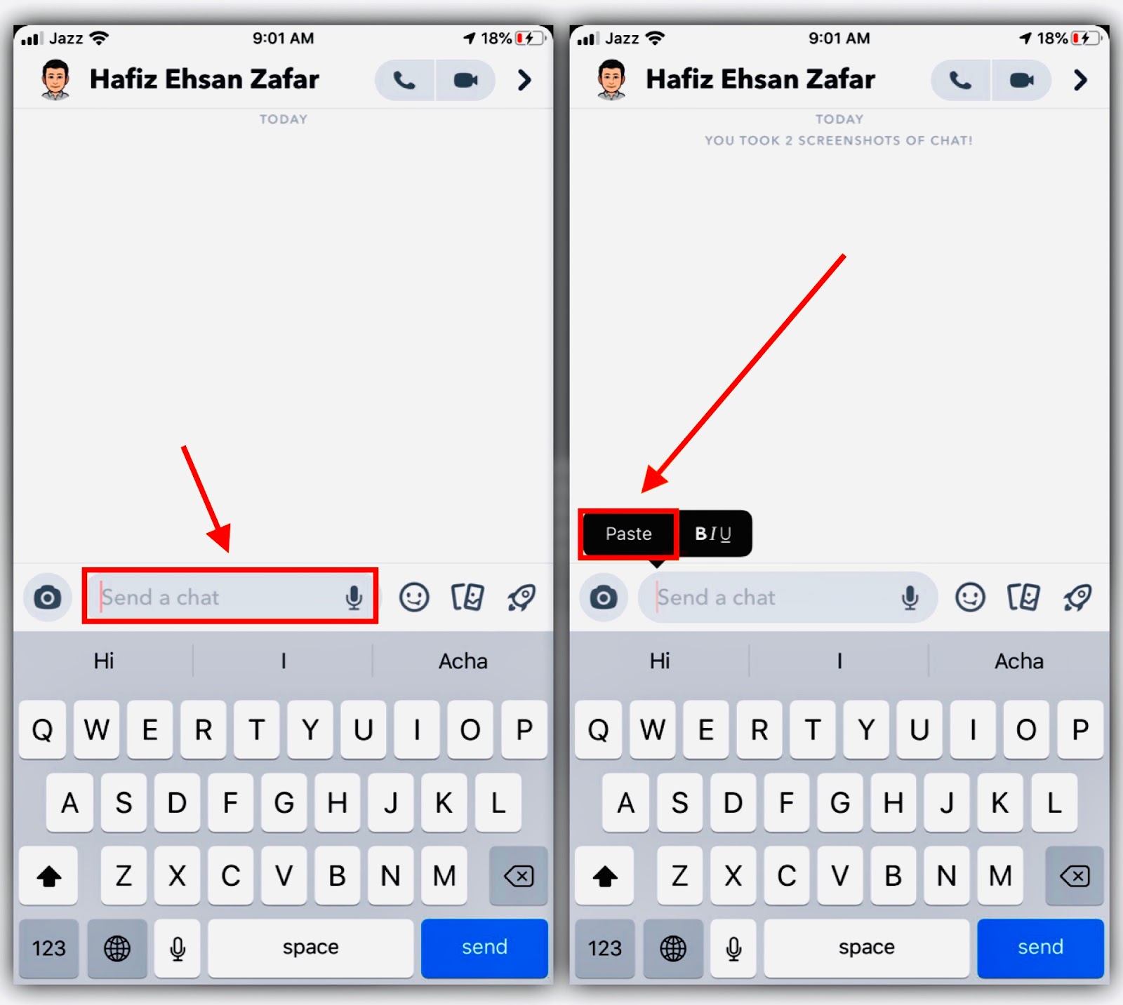 Whenever you want to send the blank message then the message send button does not appear. So if your friends don't know about this trick then you can send a blank message on snapchat and gain extra attention from your friends.